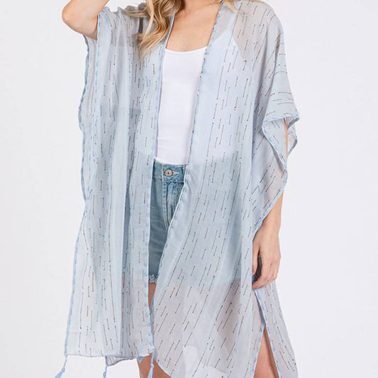 COLORED STITCH TRIM AND TASSEL KIMONO.