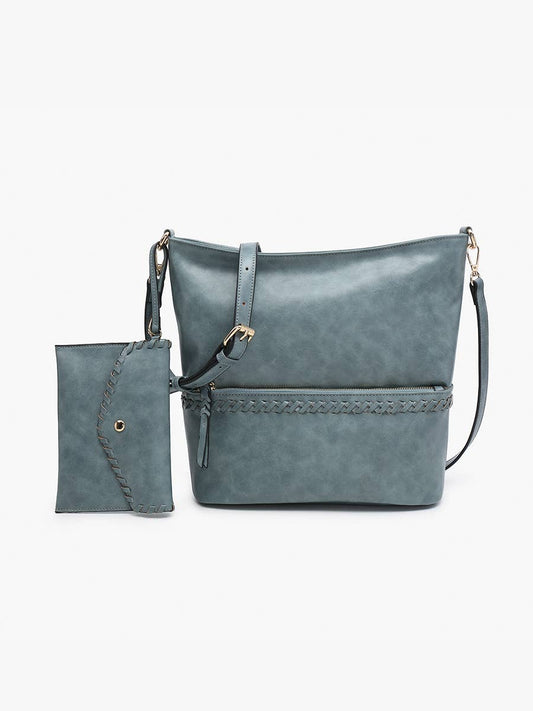 Cynthia Distressed Whipstitch Hobo w/ Wristlet