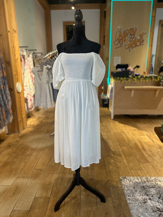 Wing Sleeve White Maxi Dress (Easel)