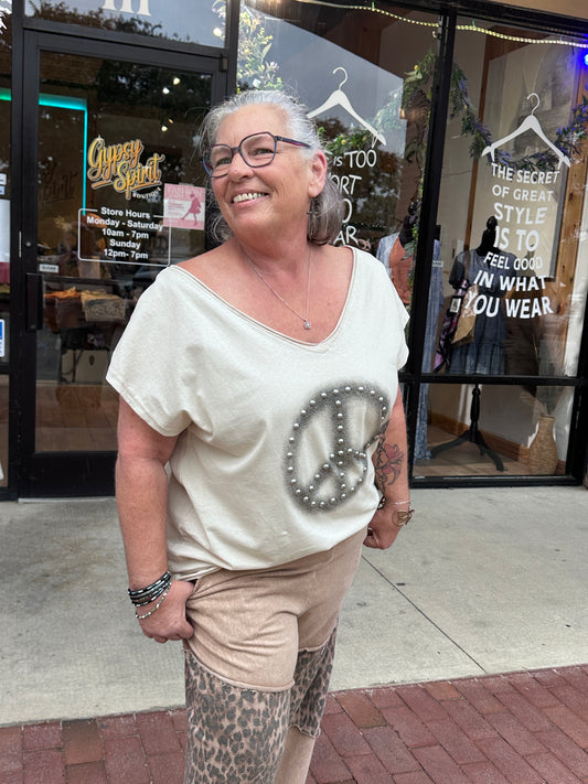 Peace Out Off-Shoulder Studded T-Shirt(POL)