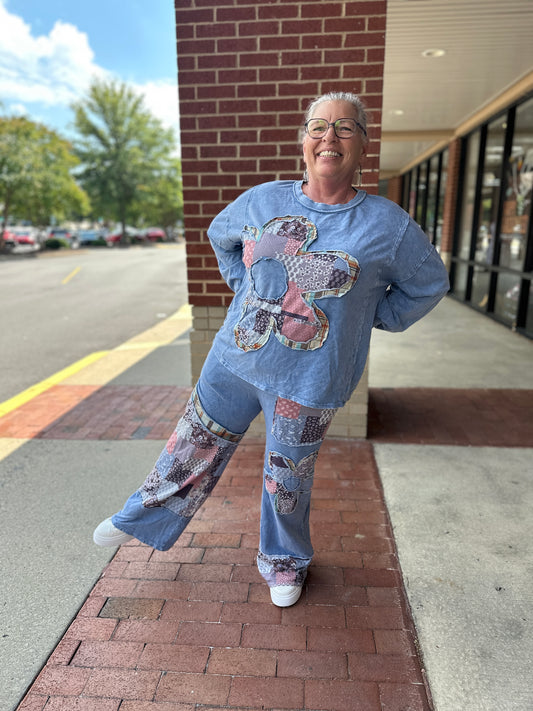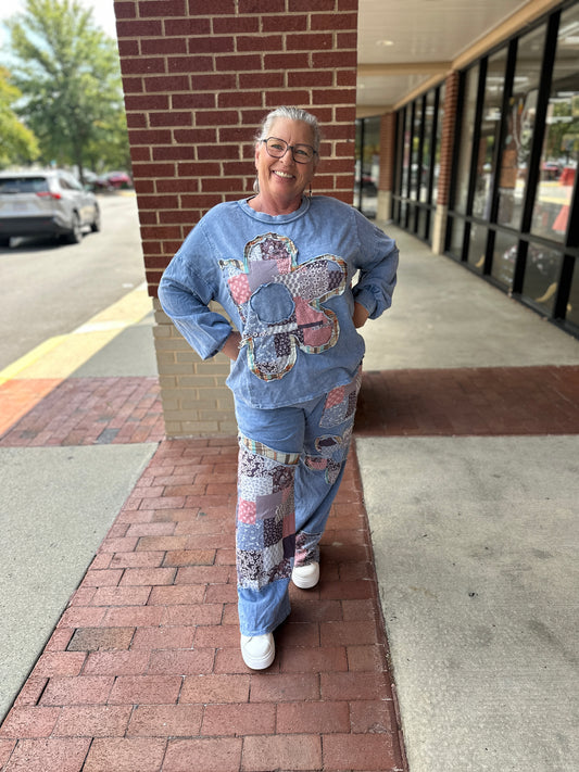 Mineral Washed Lace Petal Flower Patched Romper (J.Her)