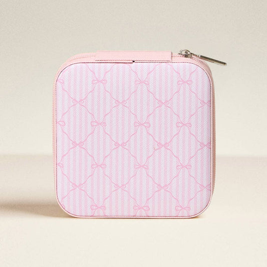 Pink Bow Pattern Portable Square Jewelry Box