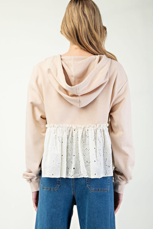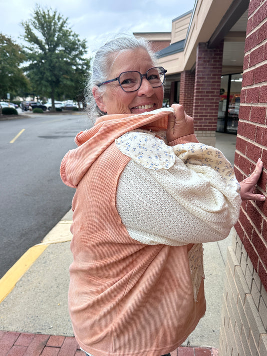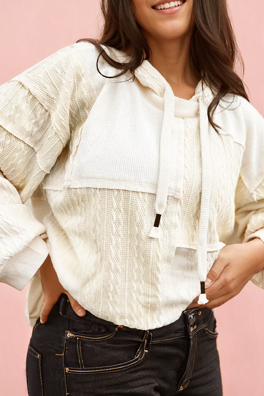 Plus Size Textured Patchwork Exposed Seam Hoodie