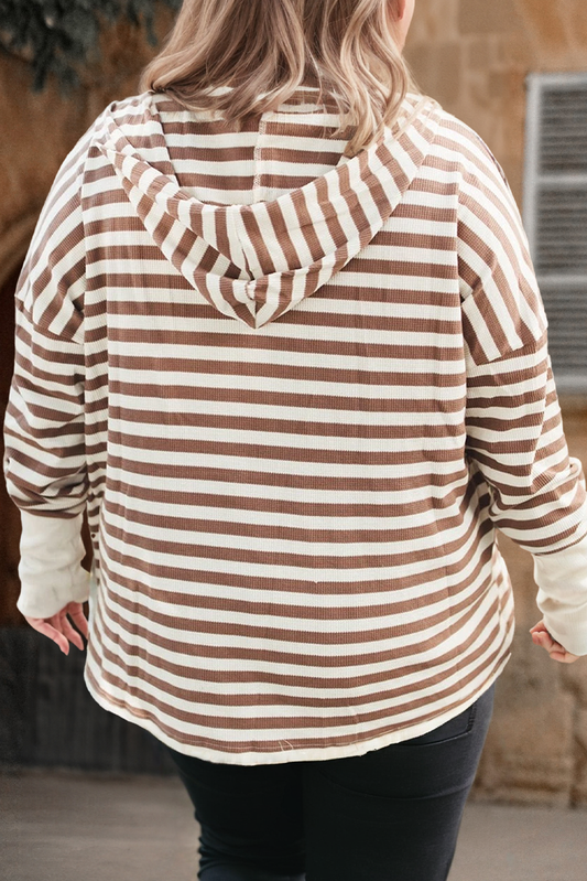 Women's Plus Size Striped Button-Up Long Sleeve Hoodie
