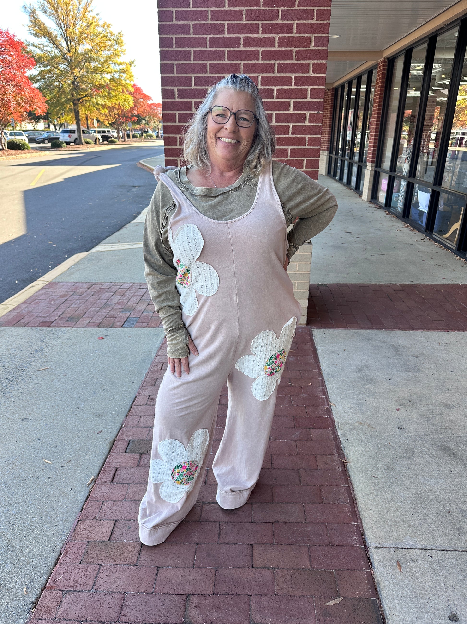 Mineral Washed Flower Patched Romper (J.Her)
