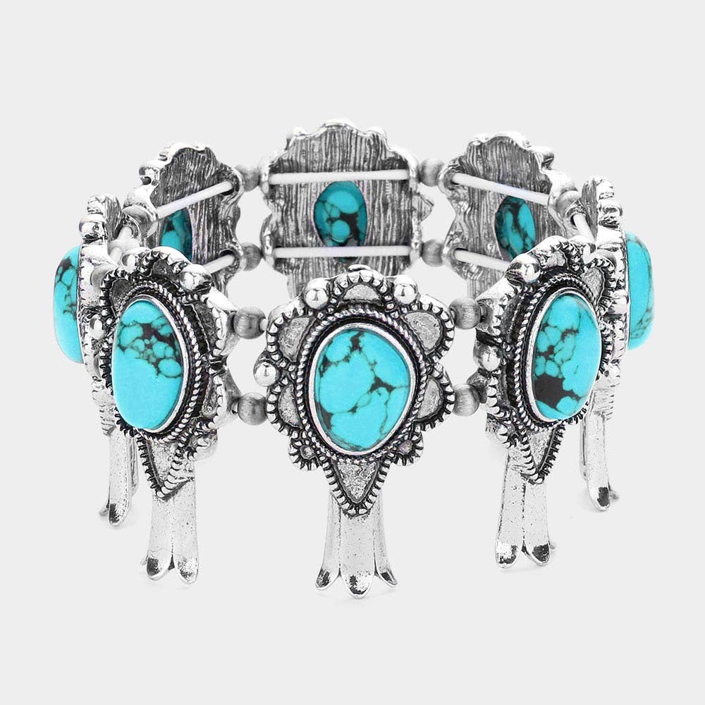 Natural Stone Accented Squash Blossom Stretch Bracelet