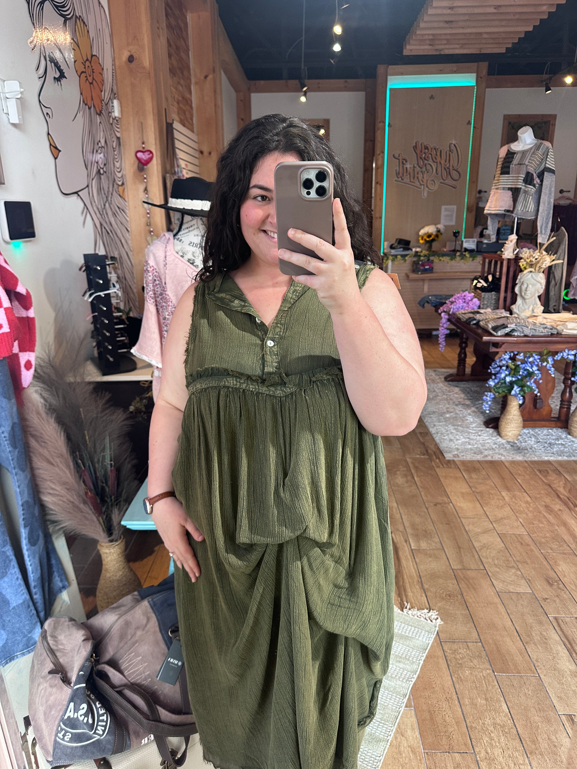 The Tuck It Up Dress features a reversible bodice and flowy cotton material. Pair with long sleeves and leggings for extra warmth during colder months. Transition to spring and pair with sandals and a small handbag for brunch with friends. Functional buttons.
